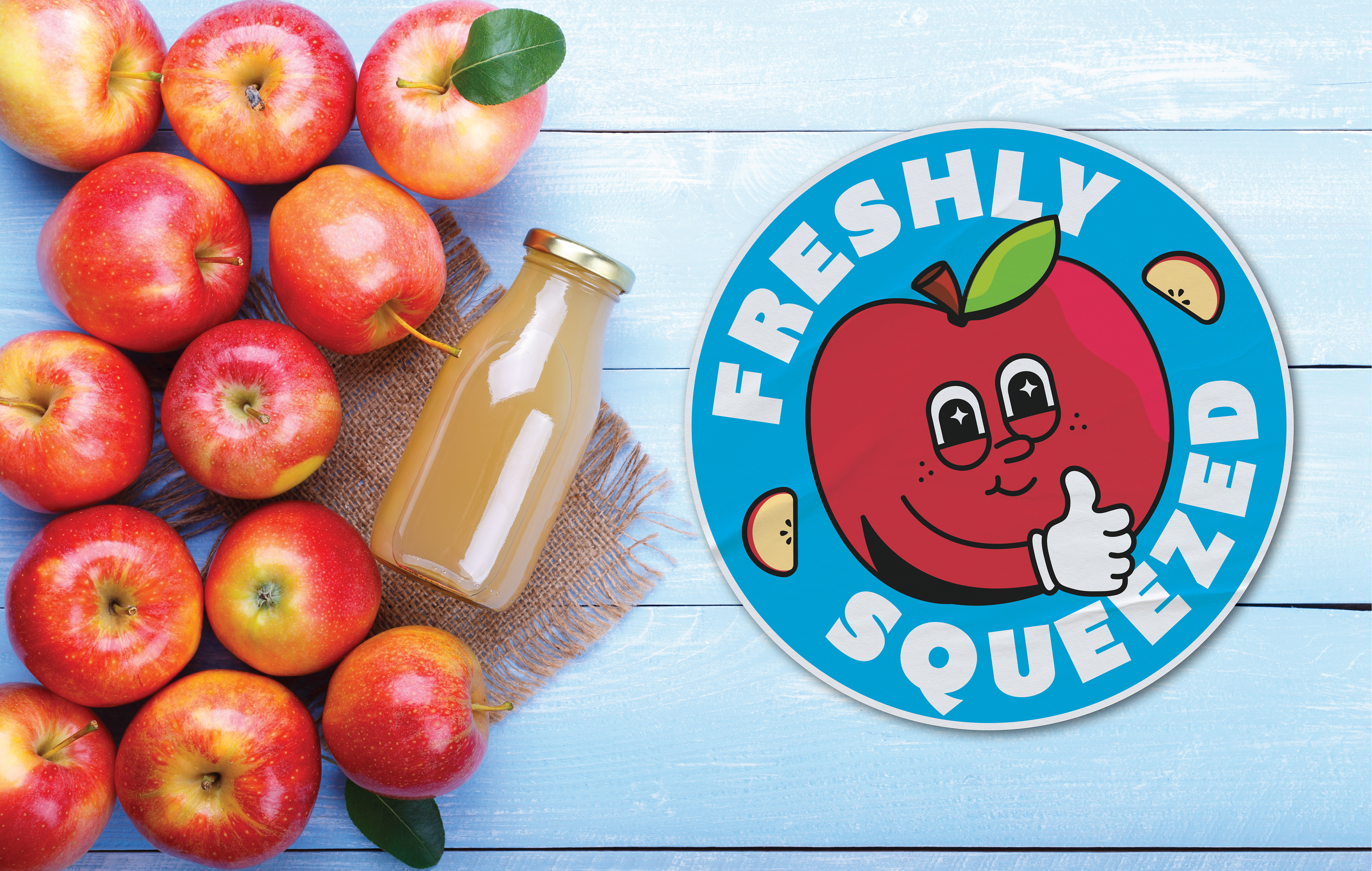 Fun sticker for apple juice, static and animated